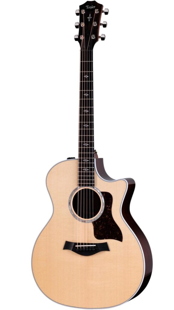 The Grand Auditorium 414ce boasts the time-honored tonewood pairing of Indian rosewood topped with Sitka spruce, yielding a lush, blooming overtone profile to complement its bell-like trebles, throaty lows and room-filling volume. It’s available in natural and tobacco sunburst finishes.